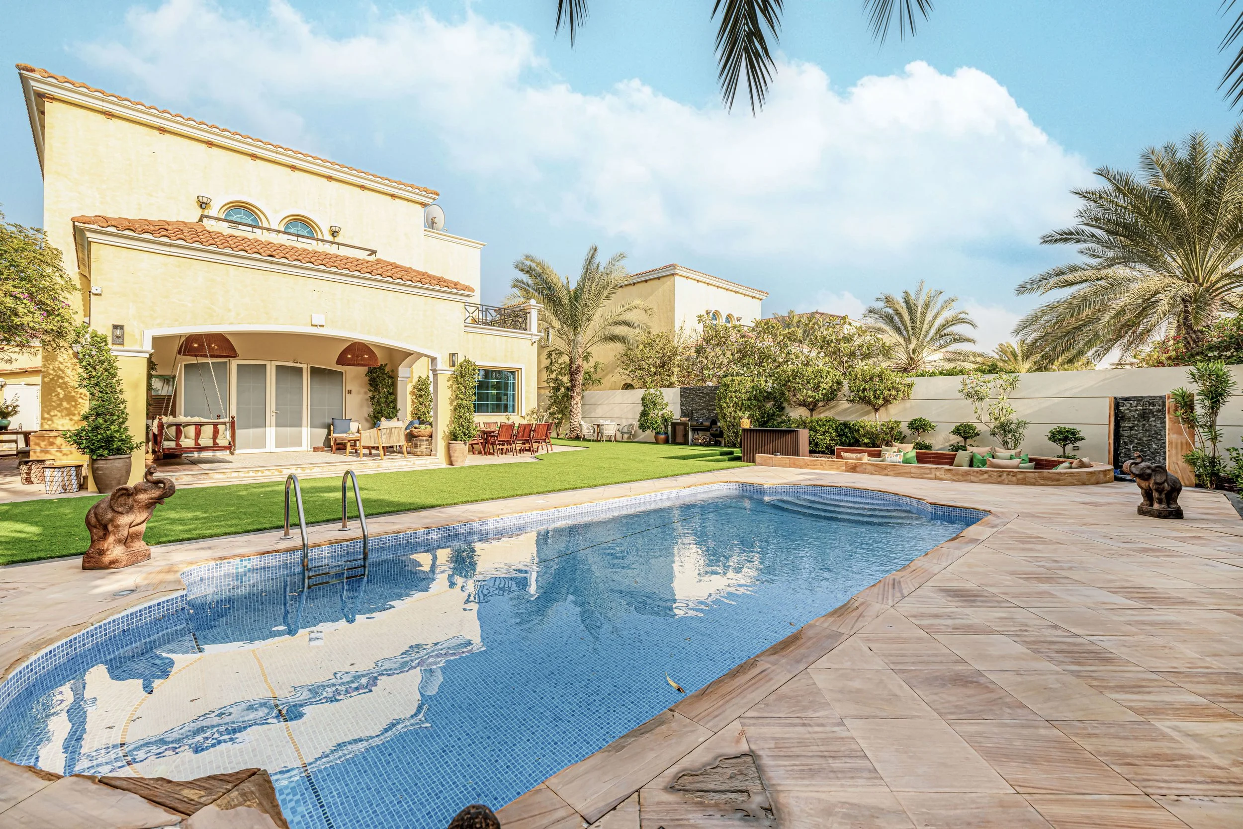 The Horizon Recovery Living accommodation also has an outdoor area that includes a patio, swimming pool, and fire pit, where residents can relax by themselves or together in community.